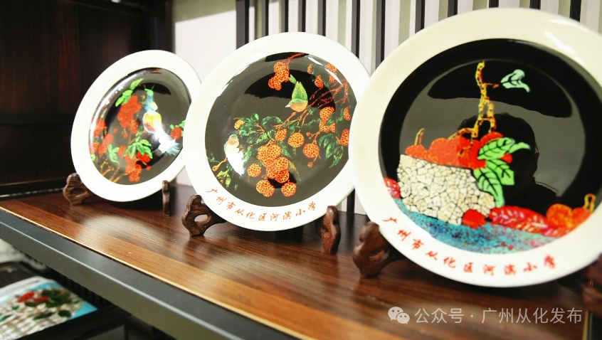 在广州市从化区河滨小学,美术老师李洁霞的漆盘已承载了十几载春秋。当她手中的漆刷轻轻掠过画板,心中的山河便被勾勒而出。记忆深处,那些源自中国千年漆艺的灵感,正在流溪河畔悄然生长,衍生出独特的纹理 。