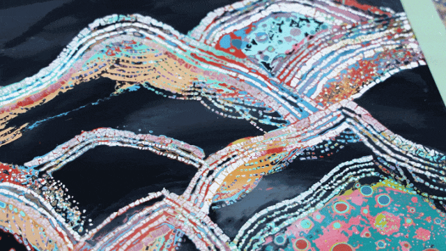李老师表示,漆画是以天然大漆为主要材料的绘画,除漆之外,所用材料还包括金、银、铅、锡以及蛋壳、贝壳、石片、木片等。