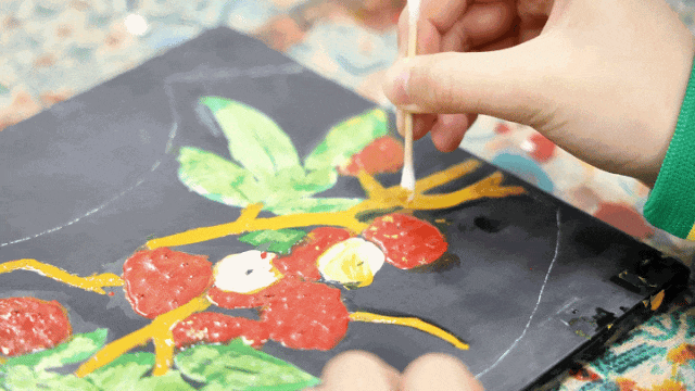 “大学的时候我偶然接触到漆画,觉得它很美、特别震撼,大学毕业后,我决心返回家乡从化传承漆画,将从化的自然风光、山水花鸟等融入漆画,用非遗的艺术创作手法来推介家乡。”李老师说。